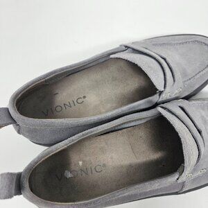 Vionic Women Size 7 Gray Hybrid Uptown Penny Leather Loafer Comfort Shoes