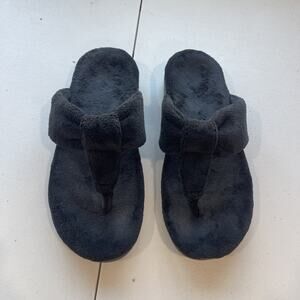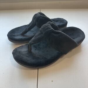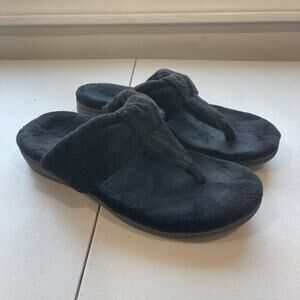 Vionic Women Slipper Sz 9 Black Faux Fur Thong Recovery Spa Lounge Rubber Sole