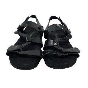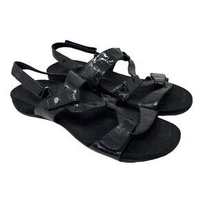 Vionic Womens 342 Paros Strappy Sandals Black Crocodile Skin Flat Hook & Loop 11