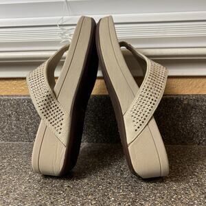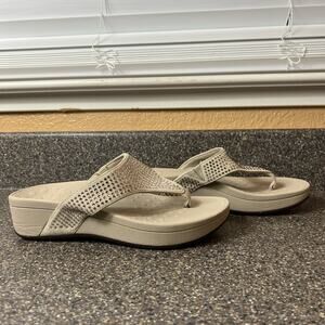 Vionic Women's Size 7 Comfort Casual Wedge Thong Sequined Gold Beige Leather Summer Sandals