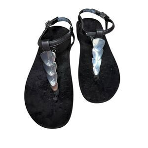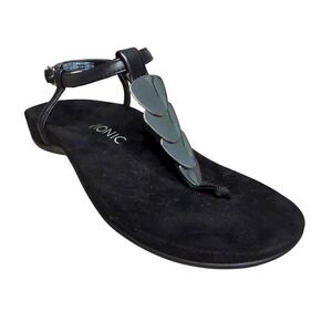 Vionic Women’s 7 Miami T-Strap Sandals Black Silver Comfort