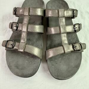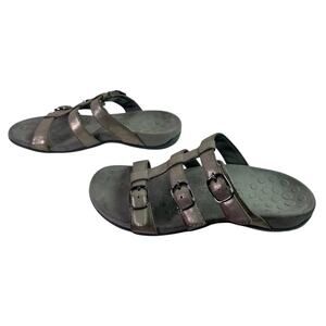 Vionic Women's 8 Pewter Gray Leather Strappy Slide On Comfort Sandals Walking