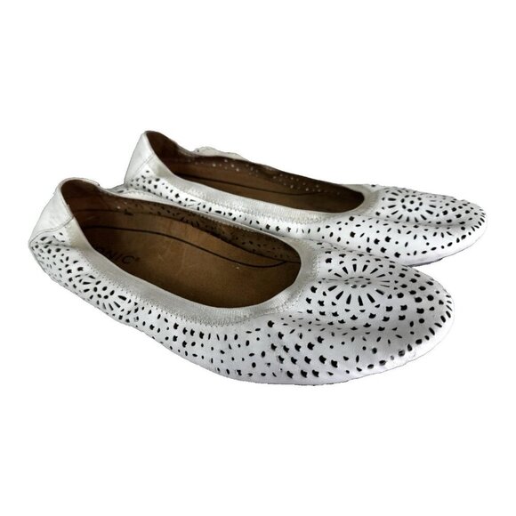 Vionic Womens 8W White Perforated Robyn Ballet Flat Boho Cottagecore Boho Chic