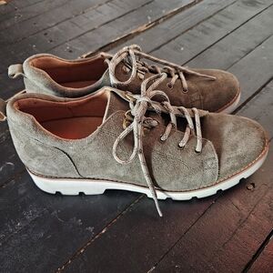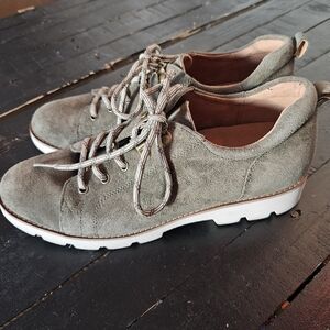 Vionic Women's 9 Ella Olive Green Suede Oxfords Shoes Lightweight Soles Comfort