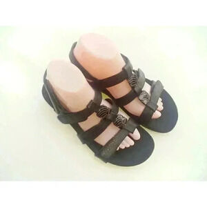 Vionic Womens Amber Strappy Sandals Black Adjustable Hook And Loop 8 EUR 39