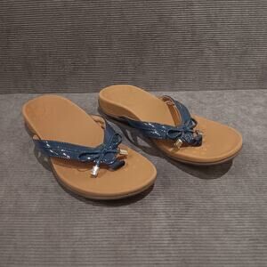 Vionic Women's Bella X Toe Post Sandals Patent Leather With Bow Navy 8