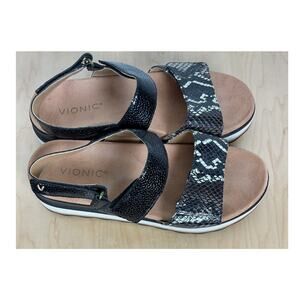 Vionic Women's Brielle Snake Platform Strap Sandal in Black Size 7