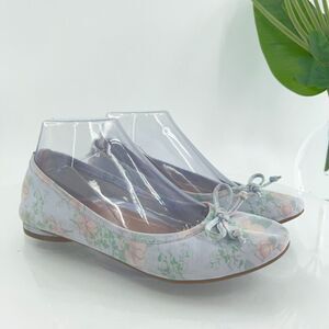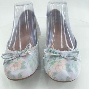 Vionic Women's Callisto Ballet Flat Size 7 Blue Floral Slip On Shoe Cap Toe Bow
