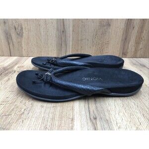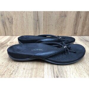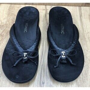 Vionic Women's Cassie Sandals Size 11 Black Thong Bow Leather Vacationcore
