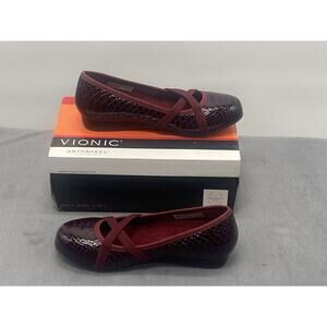 Vionic Women’s Dakota Orthaheel Croc Wedge Leather Shoes Plum Size 7.5 Comfort