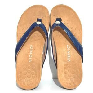 Vionic Women’s Davina Patent Slip On Thong Sandals Size 7 Dark Blue