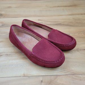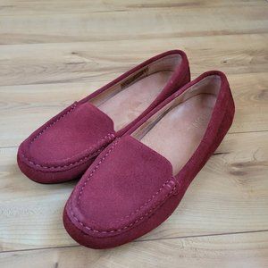 Vionic Womens Debbie Suede Moccasins Burgundy Red Slip On Loafers Size 7.