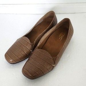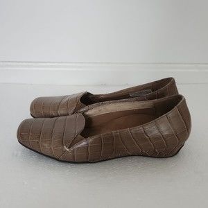 Vionic Women's Dolores Croc Embossed Wedge Loafers, Beige, Size 7.5