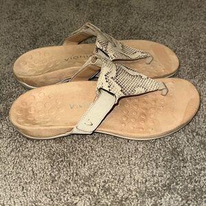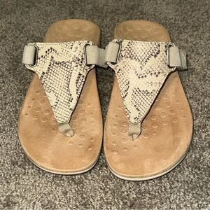Vionic Womens Flip Flops 8 Wanda Embossed Snake Print Bone Sandal T-Strap NEW