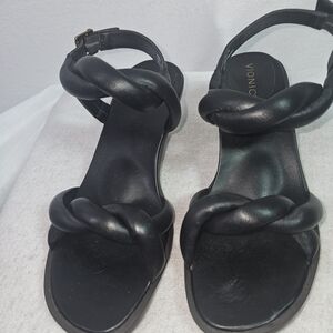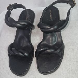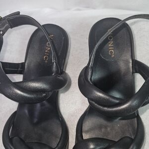 Vionic Women's Freesia Angelica Puffy Strap Kitten Heel Sandals Black, Sz 6.5