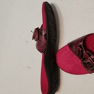 Chic fuchsia slides with a snakeskin pattern. Features a stylish buckle. Ideal for everyday wear.