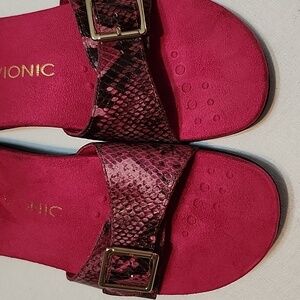 Vionic Women's Fuchsia Snakeskin Slide Sandals