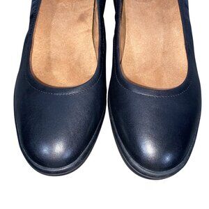 Vionic Womens Jacey Black Leather Wedge Pumps Size 9 neutral comfort business