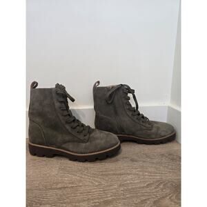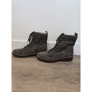 Vionic Women’s Lani Combat Boot Sz 7 Olive Sued Lace-Up Water Resistant Comfort