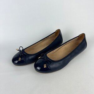 Vionic Womens Minna Blue Leather Ballet Flat Orthopedic Comfort Shoes size 9