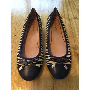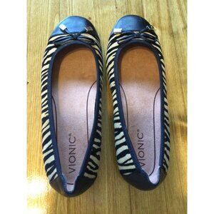 Vionic Womens Minna TGR Tiger Print Ballet Flats Size 8.5 Leather & Fabric Black