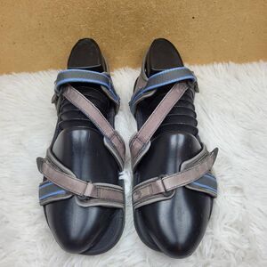 Vionic by Orthaheel. Women's performance sandals. Quarter strap sandal with hook and loop adjustable straps. Made from leather/nylon uppers, and EVA midsole and Vibram outersole. Some wear as shown in pictures. In great used condition.