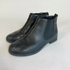 Vionic Womens Nadelle Chelsea Bootie Stacked Heels Black Sz 6 Leather Side Zip