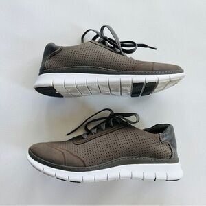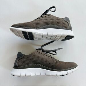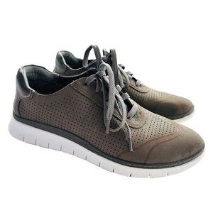 The Riley casual lace-up features a fully-integrated, synergistic base unit, a lightweight flexibility and a deconstructed feel. Nubuck and leather uppers with minimal seams and laser perforation detailing.