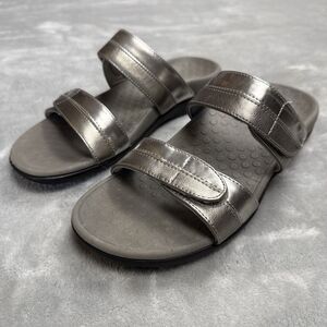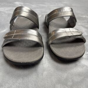 Vionic Sarah Womens 7 Gray Hook & Loop Sandals Comfort Orthotic Flat