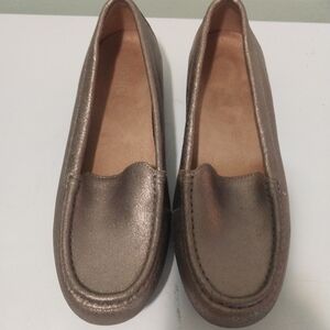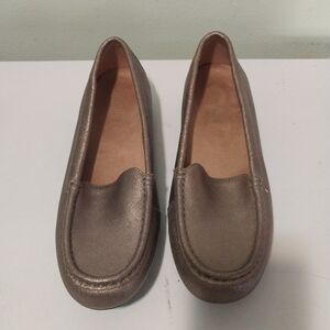 Stylish Vionic shoes with a bronze finish. Comfortable sole design.