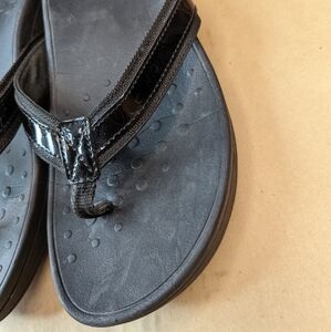 Vionic Women's Size 10 Tide ll, Black Patent Leather Flip Flop Podiatrist Designed Orthotic thong sandals.