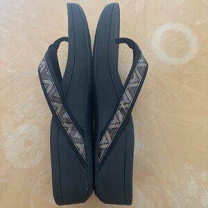 Vionic Women's Size 10W(Wide) Pacific Hightide Platform Chevron Black Sandals