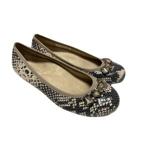 Vionic Womens Size 6.5 Spark Kiska Slip On Shoes Ballet Flats EUC Natural Snake