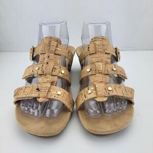 Vionic Womens Size 7 Tan Radia Cork Wedges Strappy Slide Sandals