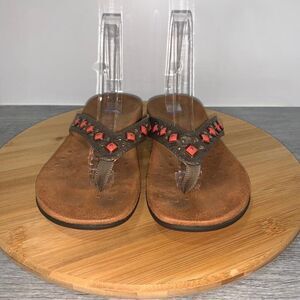 Vionic Women's Size 7 US 340 Floriana Tan Embellished Thong Flip Flop Sandals.
