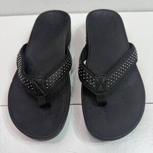 Vionic Womens Size 8 Black Studded Wedge Sandals