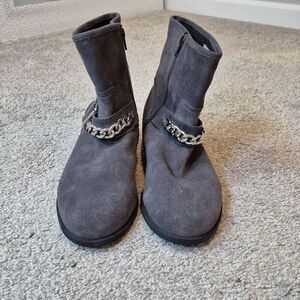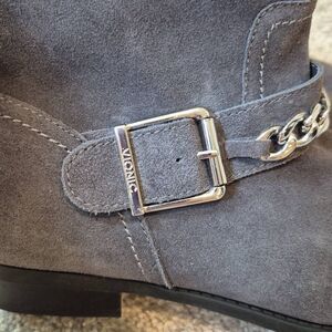 Vionic Women's Size 9.5 Boots Gray Suede Moto Ankle Buckle Chain