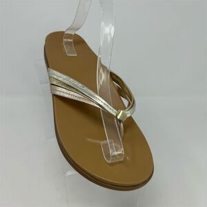 Vionic Women's Strappy Gold Leather Thong Sandals Size 11 Orthopedic Support