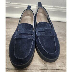 Vionic Women's Sz. 7.5 Navy Blue Suede Loafers Black Bottoms