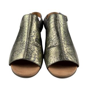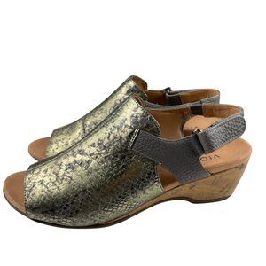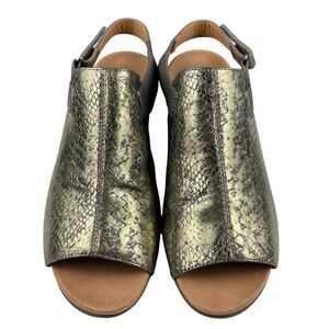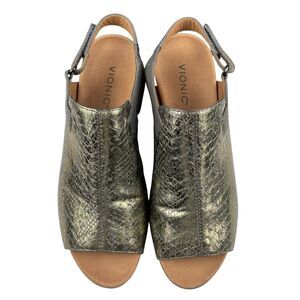 Vionic Women's Tatiana Sandals Size 10 Leather Wedge Metallic Snake Peep Toe
