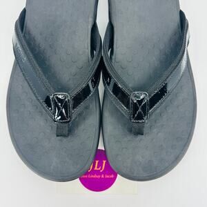 Vionic Women's Tide Toe Post Patent Leather Black Comfort Thong Sandals Size 9