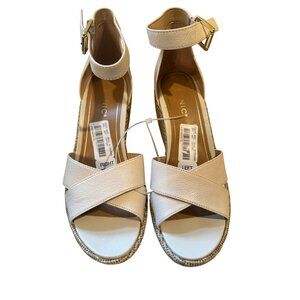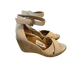 Vionic Womens Venus Marina Leather Wedge Ivory Heels Size 9.5 Orthotic Sandal