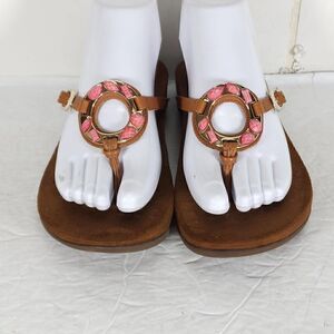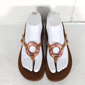Vionic Women's Vicci US8 Brown pink Leather Rhinestone FlipFlop Thong Sandal Shoes .