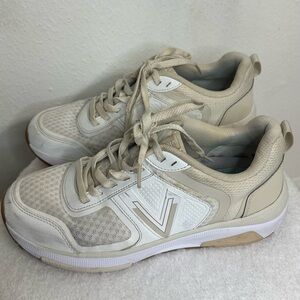 Experience the perfect blend of style and comfort with Vionic's athletic shoes, featuring a breathable mesh and synthetic upper in a chic white and cream colorway. Designed for optimal support, these shoes offer a cushioned midsole and a secure lace-up closure, making them ideal for both training sessions and casual outings.