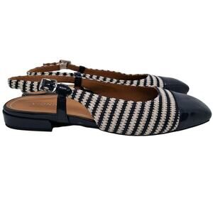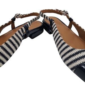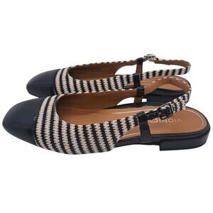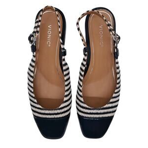 Vionic Womens's 8 Navy Stripe Slingback Ballet Flats Woven Petaluma Casual Shoes
