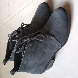 Vionic Zenda Orthotic Gray Suede laced Andy ankle booties Victorian style