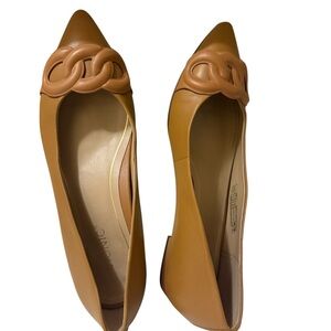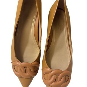 Vionic caramel color Leather Flats with Ruched Detail in new conditions