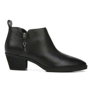 These Vionic ankle boots provide comfort and style with their sleek black leather design. Ideal for various occasions, they feature a practical side zipper for easy wear.