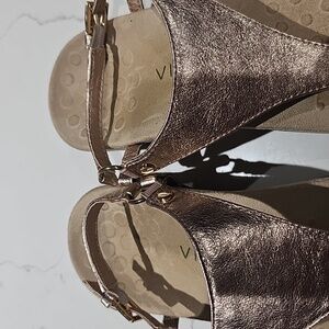 Vionic kirra leather triangular thong sandals metallic rose gold summer Size 8
