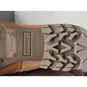 Toffee color, size 8 1/2. Cute and very comfortable! Lace tie front, side zipper. Leather uppers, lug sole bottom.